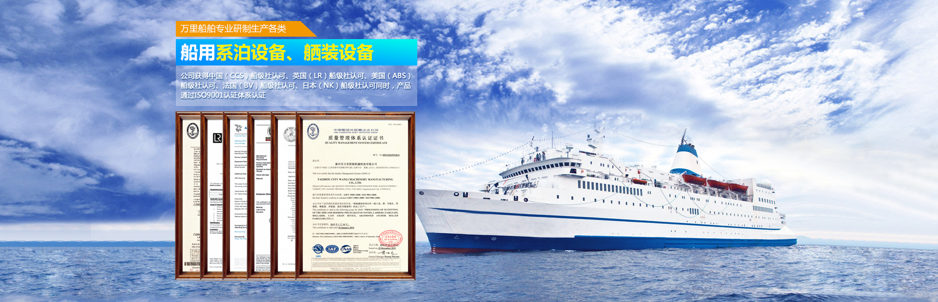泰州市萬(wàn)里船舶機(jī)械制造有限公司位于姜堰市西郊橋頭工業(yè)集中區(qū),東臨寧靖鹽高速公路,南傍寧啟鐵路及328國(guó)道,距泰州火車(chē)站10公里,交通十分便利。 本公司是一家研制生產(chǎn)各類(lèi)船用系泊設(shè)備、舾裝設(shè)備的專(zhuān)業(yè)廠家,所生產(chǎn)產(chǎn)品品種齊全、質(zhì)量可靠。其中導(dǎo)纜器、導(dǎo)纜滾輪、導(dǎo)纜孔、帶纜樁、棄錨器、人孔蓋、導(dǎo)鏈滾輪廣泛應(yīng)用于國(guó)內(nèi)各大船廠,同時(shí)外銷(xiāo)日本、韓國(guó)、西班牙、意大利、臺(tái)灣等國(guó)家及地區(qū)。本公司已獲得中國(guó)(CCS)船級(jí)社認(rèn)可、英國(guó)(LR)船級(jí)社認(rèn)可,美國(guó)(A···